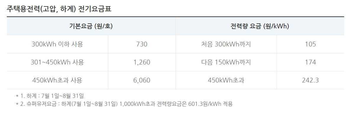 7~8월 여름 기간에는 누진세 구간이 더 넓으니 유의바랍니다.